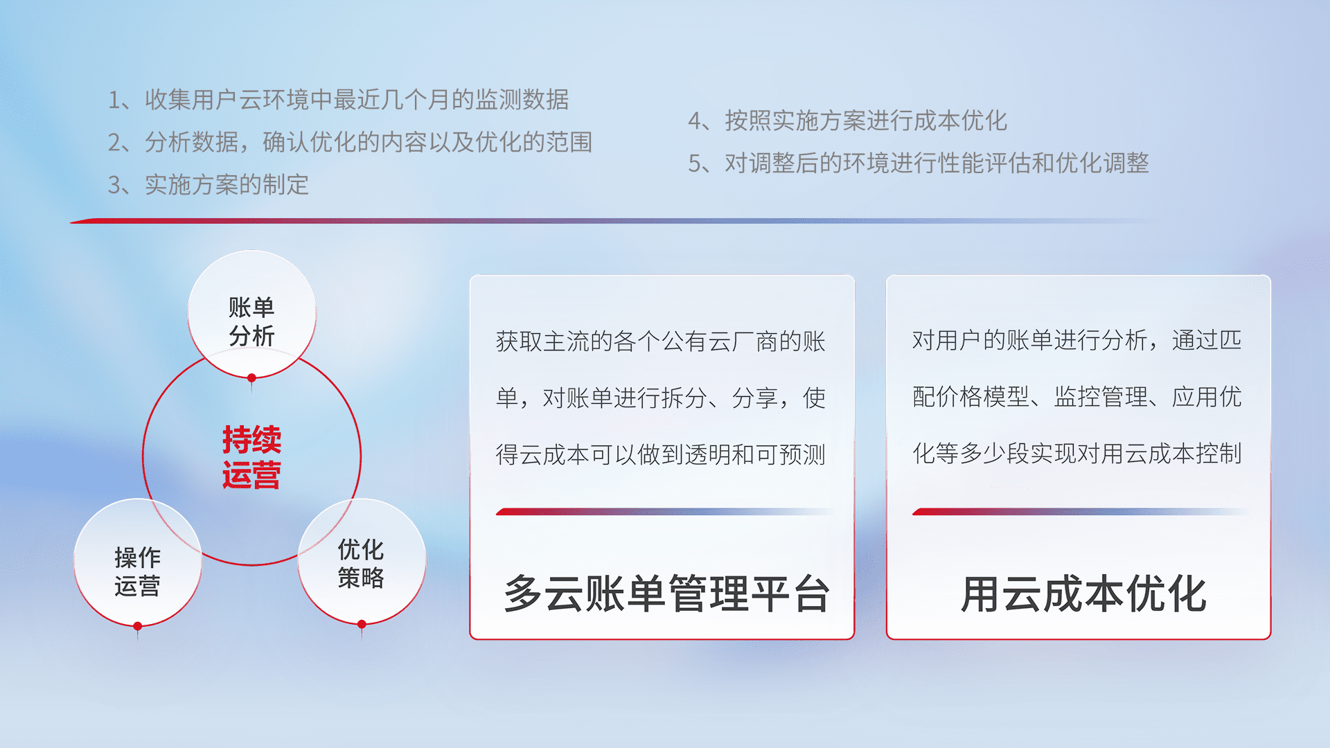 监控业务系统资源开销,,对资源的消耗精确计量,,,,实现费用的透明化管理,,,不断提升资源使用率,,调整资源购买方式,,降低资源费用成本,,,,用云成本可预测、、、用云费用可优化,,云资源配额有据可依。。